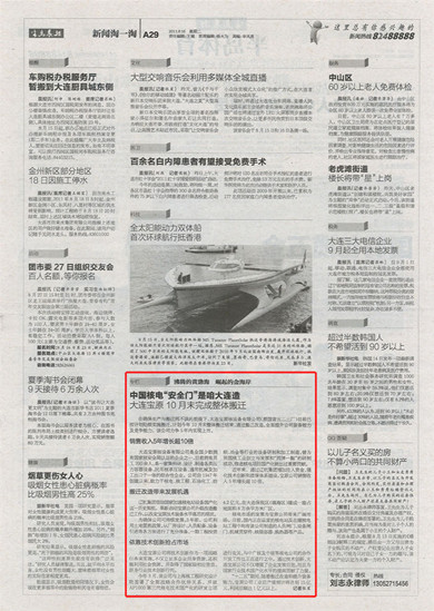半島晨報在2011年8月16日A29版中,以“中國核電‘安全門’是咱大連造--大連寶原10月末完成整體搬遷”為標題報道了大連寶原核設備有限公司相關情況。原文轉載如下: